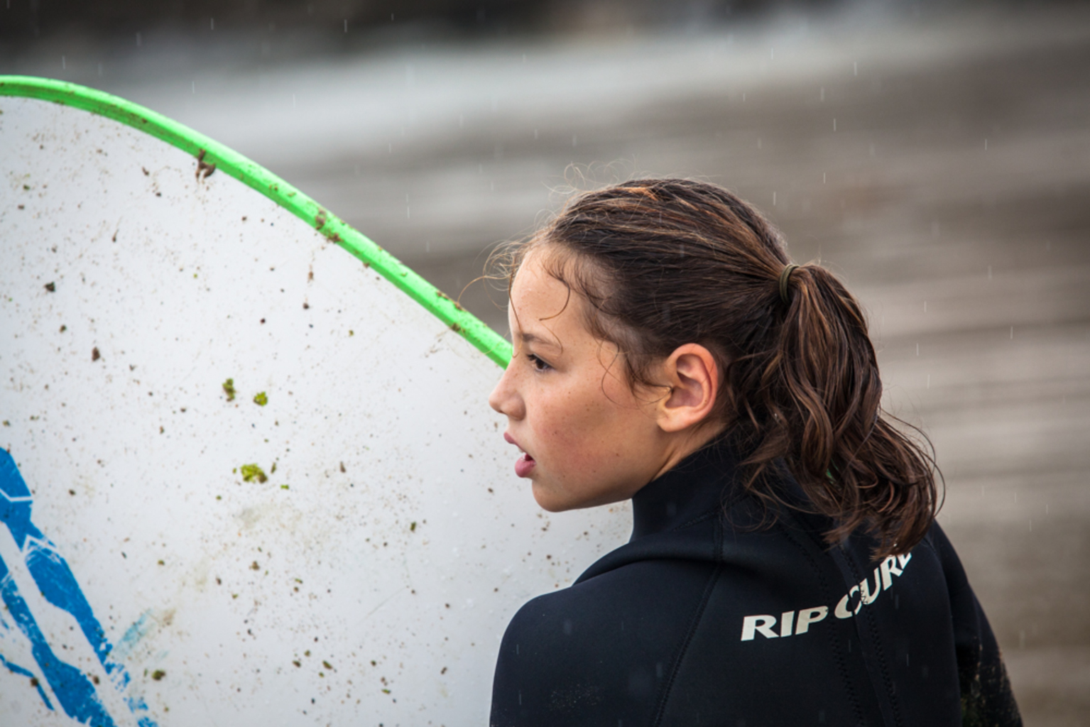 Something about a girl when she catches the biggest wave before catching the bus to school.