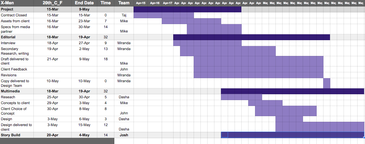 The proposed native content campaign will be distributed and promoted on cross-channel native content solutions including Outbrain, Quartz, Sharethrough, Taboola, Facebook, and Instagram. These activities will target professed fans as well as potential customers, according to the demographics established by 20th Century Fox. Across its 21-day campaign, the published native story will drive a projected 20M impressions; the conversion target of 2M measurable engagements will include story reads and social shares in addition to ticket purchases via Fandango.