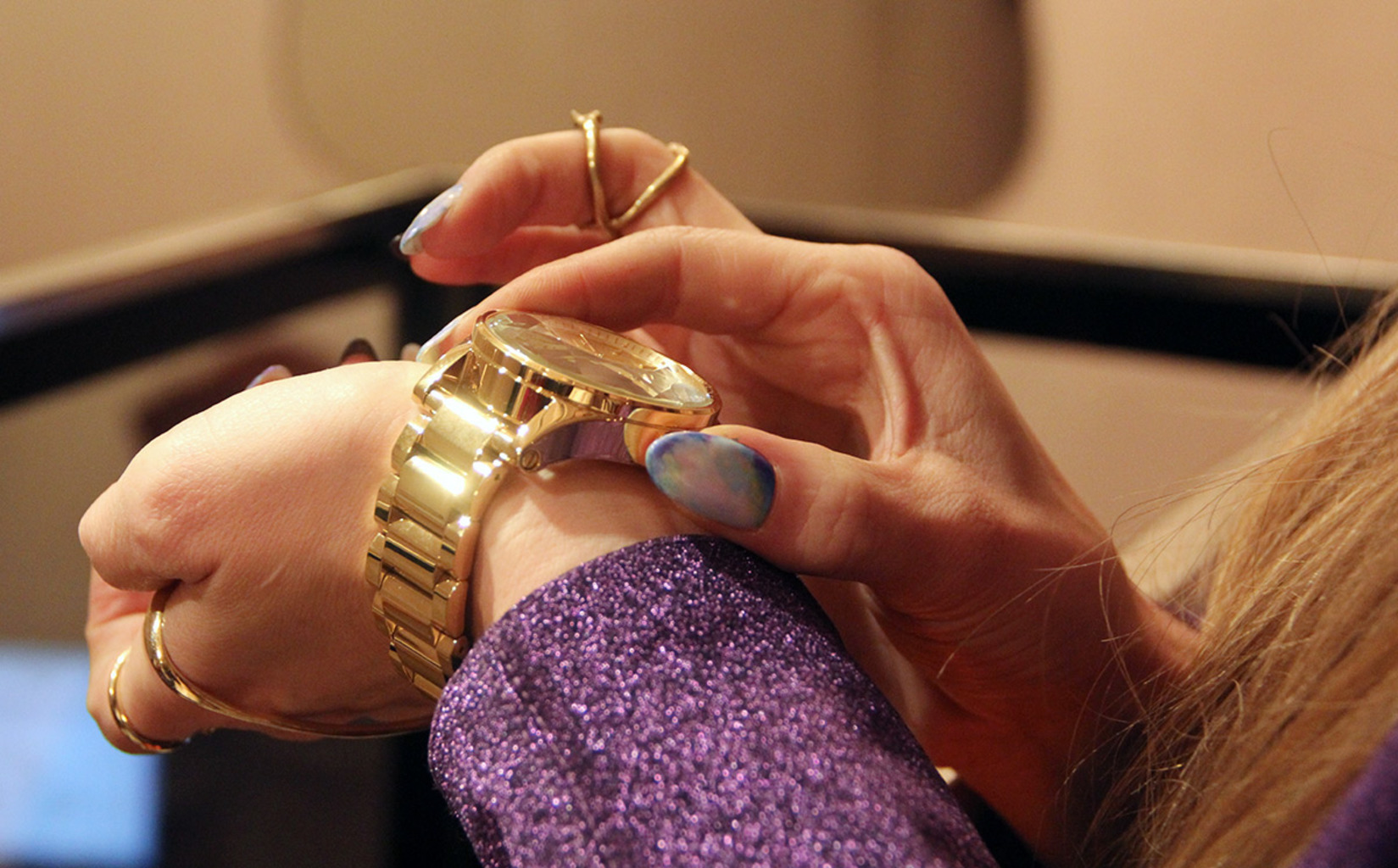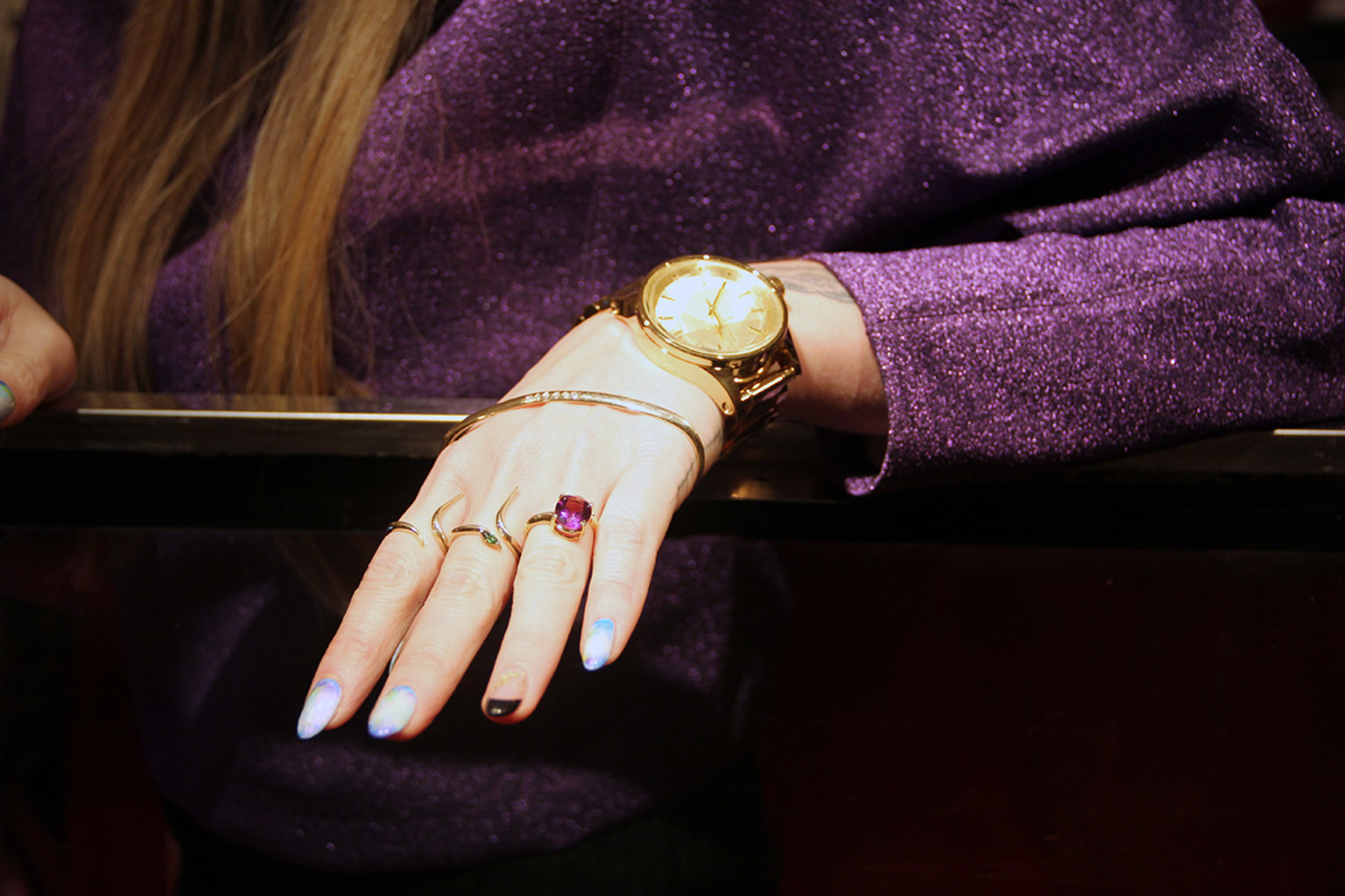 Jules Kim wears Nixon’s watch in gold, which retails for $250 and is online and at brick and mortar stores worldwide.