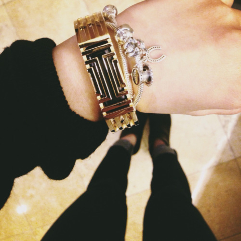 6:15pm Change clothes and pop my Flex into my gorgeous new Tory Burch bracelet. I’m meeting a client in fifteen minutes at a gallery ten blocks away. I’ll have to power walk to get there in time.