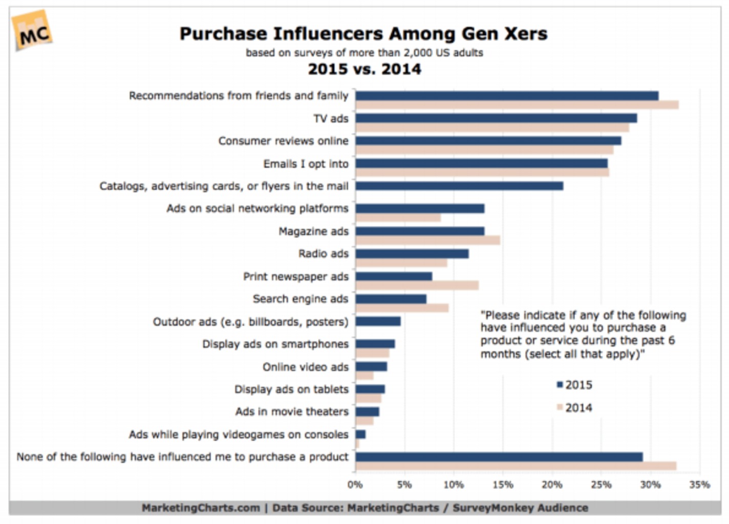 Lastly, let’s not pat ourselves on the back too much. While all this pulled data is great, it’s hard to beat survey data. According to consumers themselves (specifically Gen Xers), personal recommendations are still the most important driver for purchases.