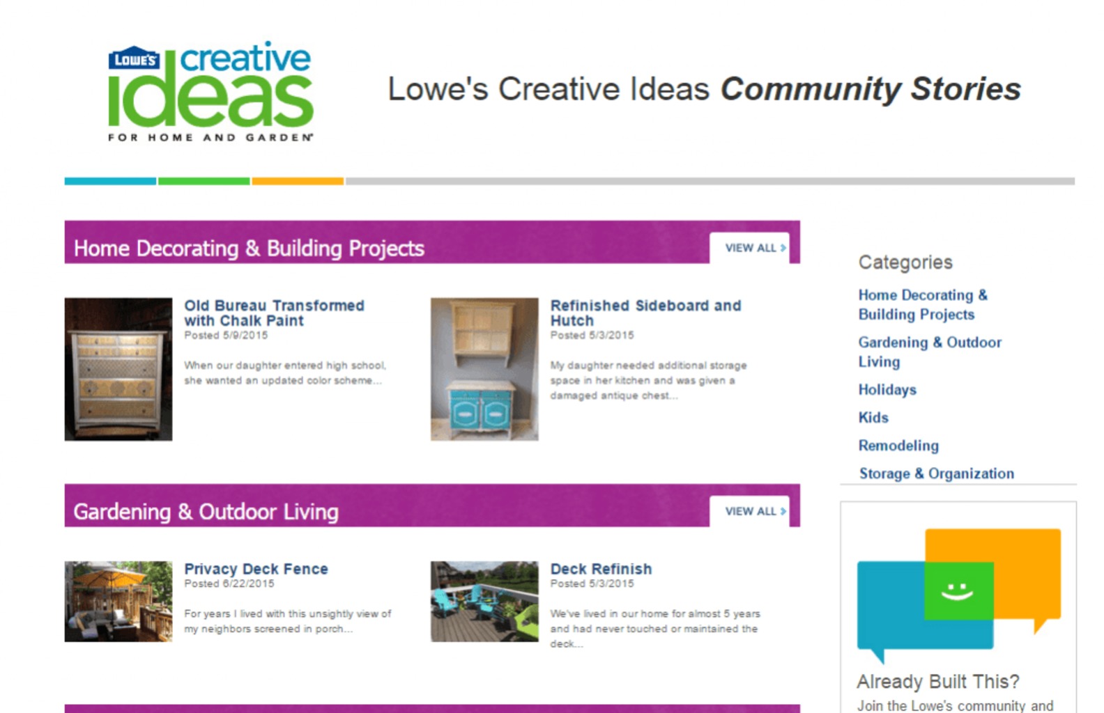 Lowes is a great example of a brand who pushes the consumer voice to the front of their messaging. They gather and promote tutorials and consumer ideas and share them in all branches of their digital messaging.